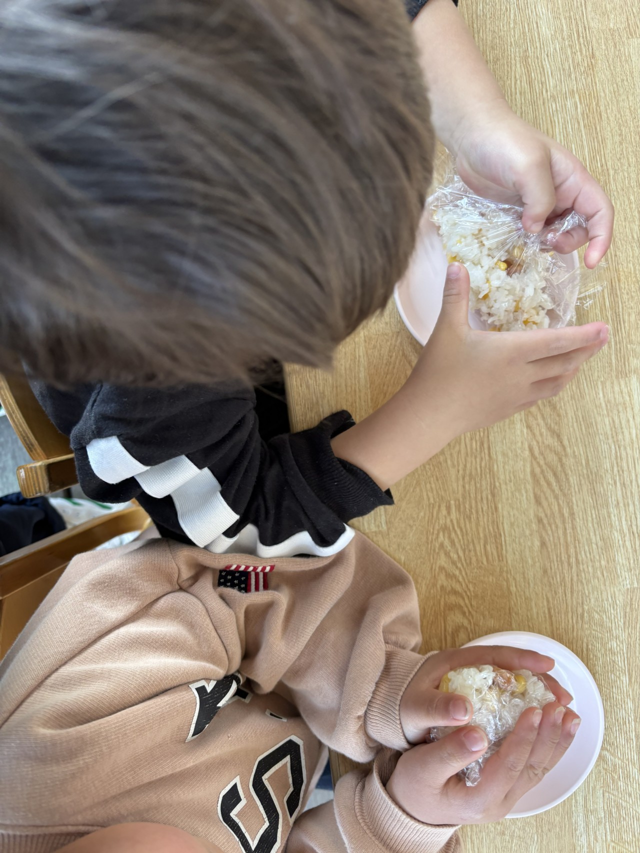「おにぎり」 3歳以上児は 自分たちで にぎった